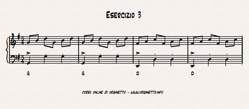 Vediamo cosa deve fare la mano sinistra (quella che suona i bassi).