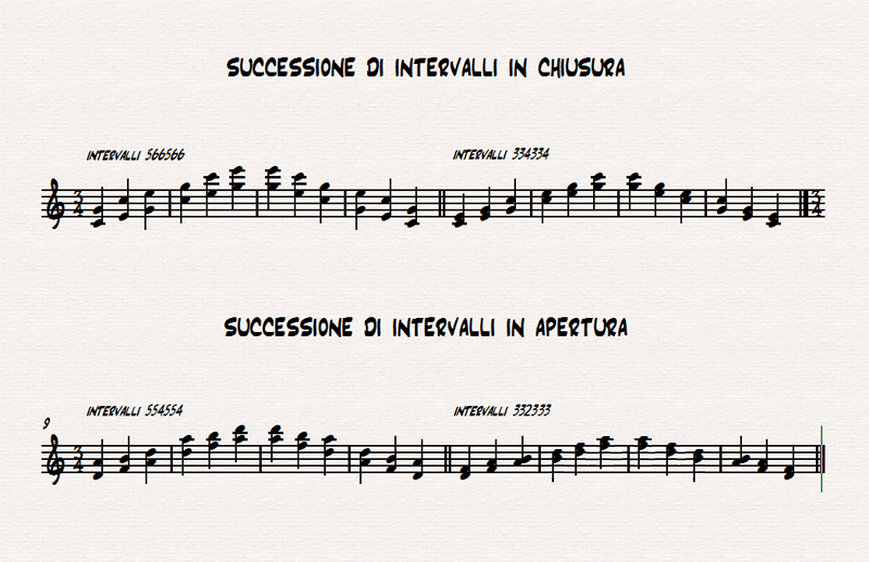 Con questo esercizio vedremo quali intervalli musicali si formano, sia in apertura che in chiusura, utilizzando due sempli disposizioni dei tasti.