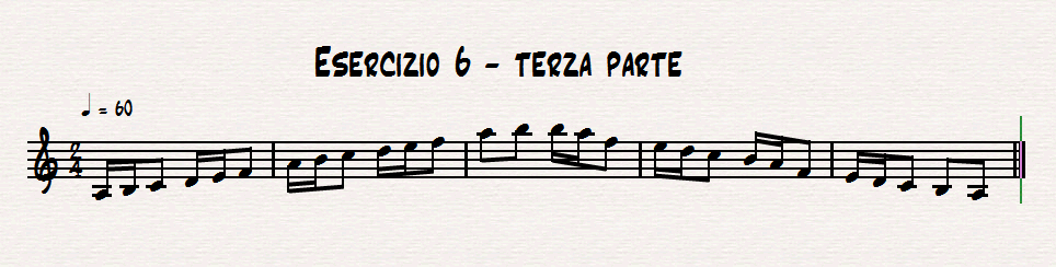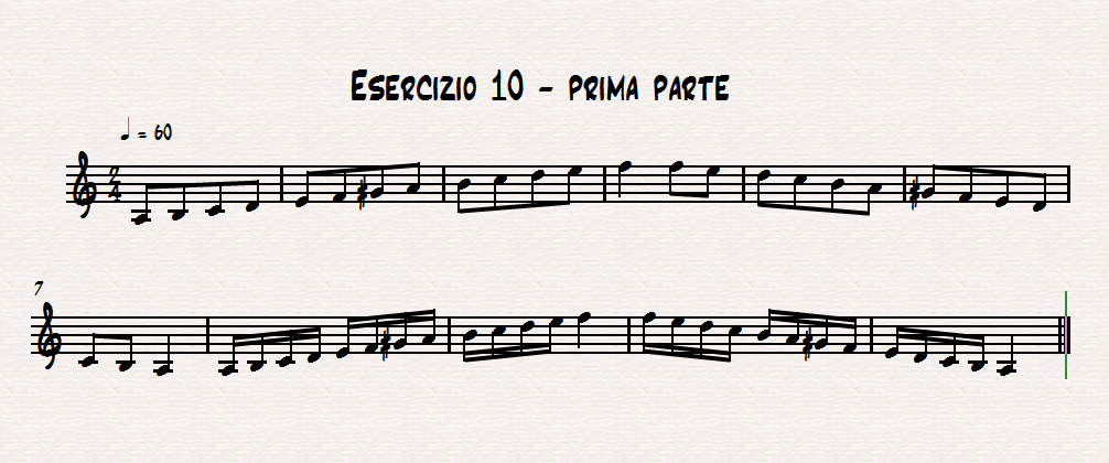 Esercizio 6 - parte I - Scala ascendente e discendente di due ottave in tempo di crome.