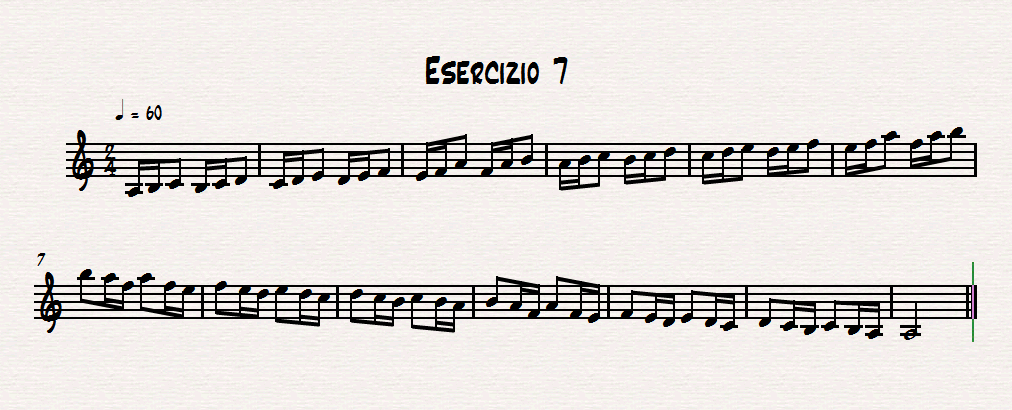 Prima di iniziare con lo studio dell'esercizio n. 7, ascoltiamolo così come dovremo eseguirlo.