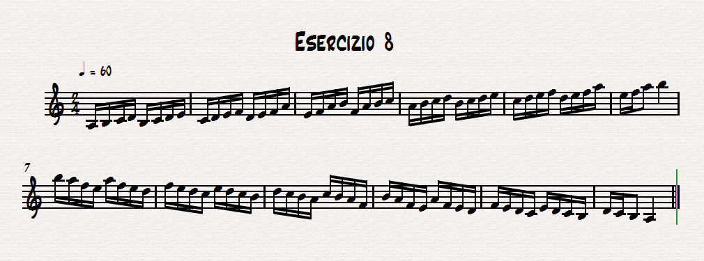 Prima di iniziare con lo studio dell'esercizio n. 8, ascoltiamolo così come dovremo eseguirlo.