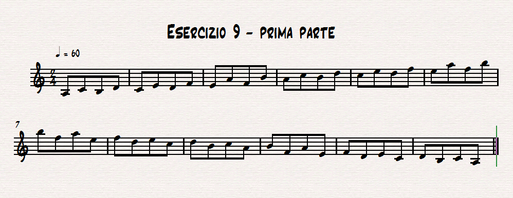 Prima di iniziare con lo studio della prima parte, ascoltiamo per intero tutto l'esercizio n. 9, prima e seconda parte, così come dovremo eseguirlo.