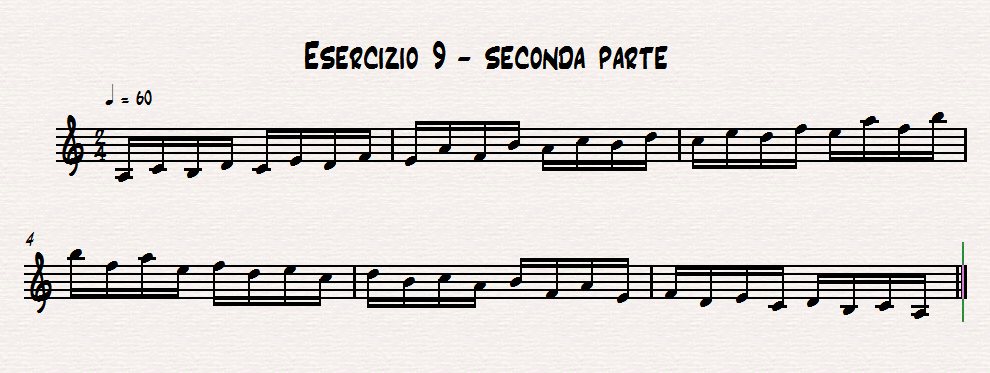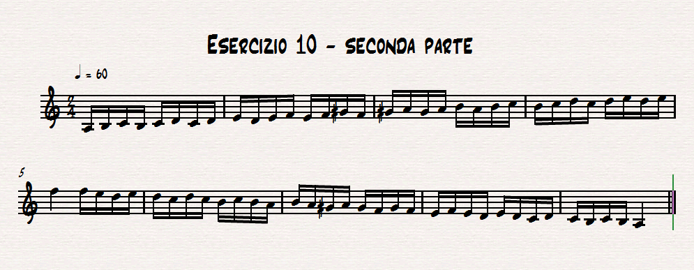 Fraseggio di due ottave su ritmo di biscrome per intervalli di seconda.