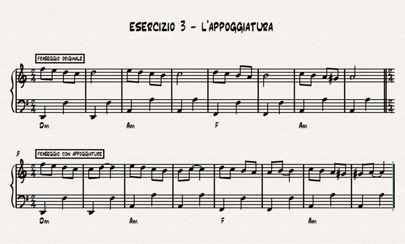 Ascoltiamo qui di seguito la differenza tra appogiatura e acciaccatura: