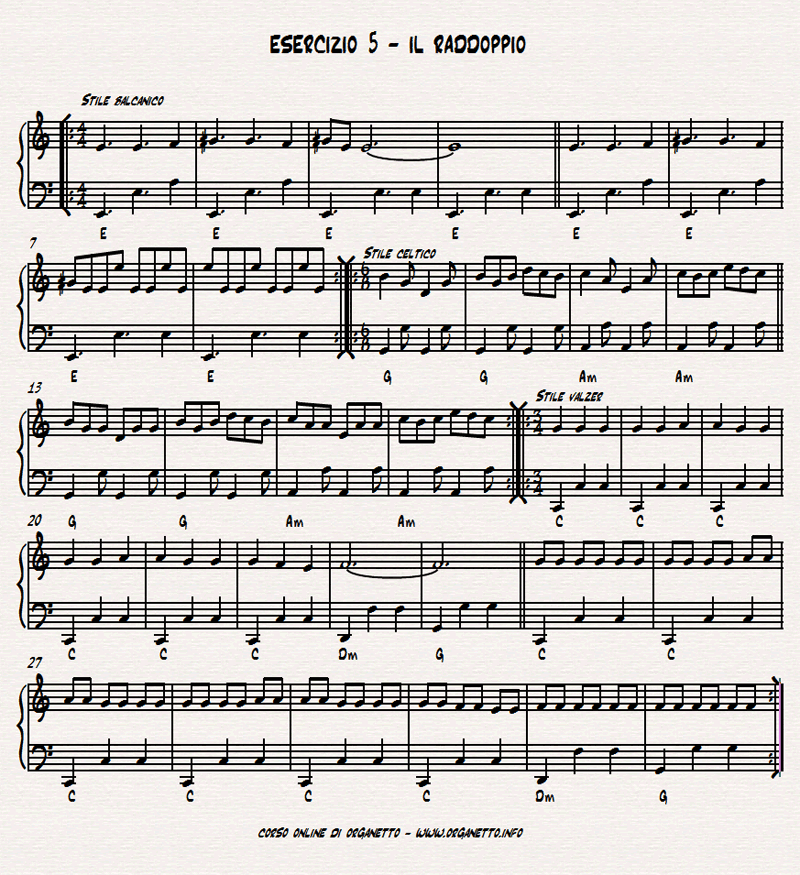 L'esercizio che svolgeremo ora mostrerà tre esempi di raddoppi in tre differenti stili: