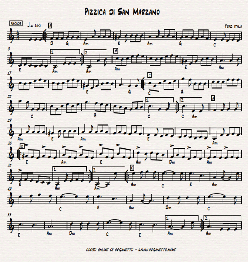 Sarà opportuno prima di tutto memorizzarla e per questo la possiamo ascoltare suonata da un organetto in versione solistica.