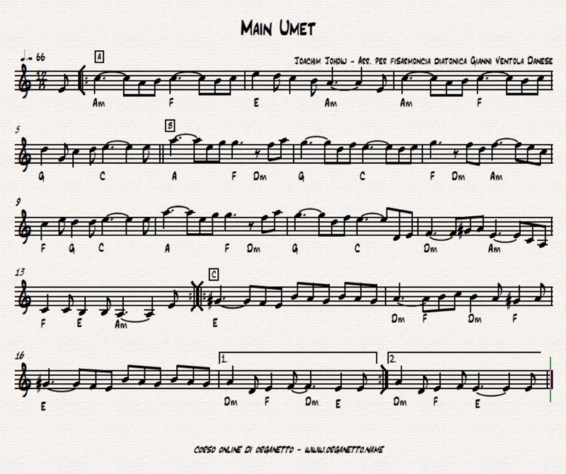 Ascoltiamo qui di seguito l'arrangiamento per fisarmonica diatonica di Gianni Ventola Danese che studieremo in questa lezione.