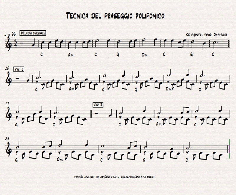 Alcune melodie possono essere variate in modo molto interessante attraverso una aggiunta di una seconda voce alla mano destra, creando quindi una vera e propria polifonia.