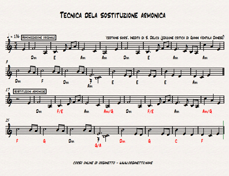 In particolare abbiamo fatto le seguenti sostituzioni armoniche: